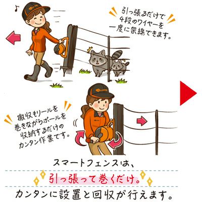 世界一の電気柵メーカー、ギャラガー社とタッグを組んだ! 電気柵 支柱 ロープ 一体型 サージミヤワキ スマートフェンス ポータブル (100m4段用) ポール リール ワイヤー