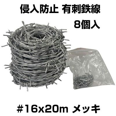 シンセイ 有刺鉄線 #16 X 20m メッキ X 8個 バラ線 鉄条網 害獣対策 防獣対策 牧場 防獣柵 侵入防止 進入禁止