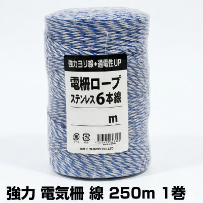 | 柵線(さく線)・通電線とよばれる電気柵専用の格安ロープ! イノシシ・シカ・サル・タヌキなどの侵入防止用に! ステンレス線6本入の強力タイプ! 青色はイノシシが識別できると言われており、心理的効果をより一層高めます! |