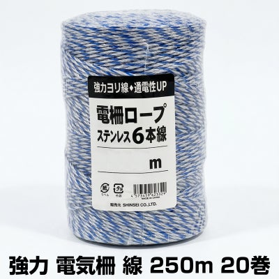 | 柵線(さく線)・通電線とよばれる電気柵専用の格安ロープ! イノシシ・シカ・サル・タヌキなどの侵入防止用に! ステンレス線6本入の強力タイプ! 青色はイノシシが識別できると言われており、心理的効果をより一層高めます! |