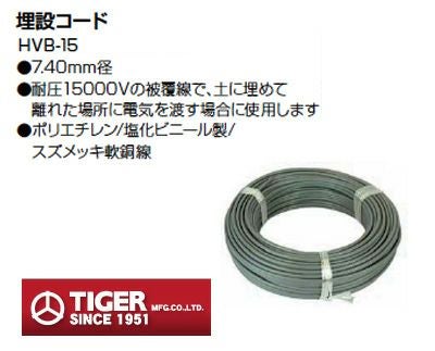 タイガー 電気柵用資材 埋設コード HVB-15 【7.40mm径×50m巻】 【3.25kg】 電柵資材