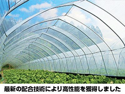 | 換気作業がラクラク、ベタつきの少ない外張り用防霧滴農ビ。 最もバランスのとれた汎用品。透明性に優れ、強度(耐寒衝撃、引裂き)、作業性を向上させた外張り防霧滴農ビです。 ●ベタつきを軽減。 ●強度がさらにアップ。 ●高い光線透過率。 ●優れたウェルダー接着性。 関西・九州地区限定発売です。 |