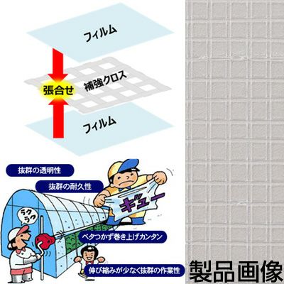 | クロスの補強により強度、耐久性がアップ! べたつかず、伸び縮みが少なく抜群の作業性! 【特長】 ●フィルム表面に凹凸がある為、サイドの自動巻き上げに最適です。 ●独自の技術により、ハウス内のキリやモヤの発生を抑え、ボタ落ちを防ぎます。(練り込みタイプ) ●同一PO系樹脂で構成されたフィルムです。(廃棄が容易) ●紫外線による劣化を防ぐ特殊な安定剤を使用している為長期間使用が可能です。 ●クロスの補強により強度がアップし、自動巻き上げ等にも適しています。 ●透過率(87~90%)がよく、外張りにも最適です。 ●テルエースクリスタルご使用に際してのご注意 フィルムの劣化を早めますので、ハウス内の硫黄燻蒸および硫黄散布は行わないでください。 |