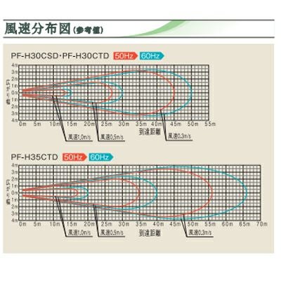 インジェクターリング・エアガイドにより遠距離送風を実現。35cmタイプで0.5m/sの風が最大40mに到達。