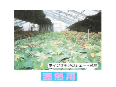 | 夏期の高温を抑え、利用目的に応じて反射の使い分けができる。 完全遮光利用:キク・トルコギキョウの短日処理に最適です 反射の特色 ホワイト面:反射率が高く、高温を防ぎます。 シルバー面:紫外部の反射が高く、有翅病害虫を忌避します。 特色 ①完全遮光:10万ルクスで3ルクス以下に遮光する製品です。 ②反射率の高いホワイト面を外側にして、トンネルやカーテンに使用すると、高温化を防ぎます。 ③短日処理時の高温による葉焼け、開花・花芽分化の遅延やムラ(不均一)の問題を解決します。 ④夜冷育苗に使用すると、効率の良い冷房環境をつくります。 ⑤電照栽培に利用すると、夜間保温性が高くなり、補光効果がなお一層高まります。 効果的な使用方法 ①ホワイトシルバーの被覆外面が濡れる程度に灌水すると、被覆内面の温度が外気温より低くなります。 ②フィルム内面の水滴の落下を防止する場合には、不織布を併用すると効果があります。 ダブル巻です。 ホワイトシルバーには遮光用の他、育苗用もあります。 |