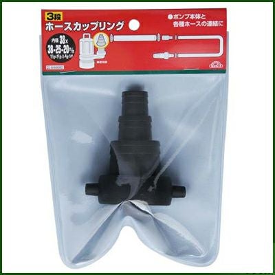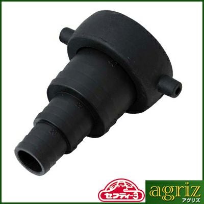 | ●ポンプ本体と各種ホースの連結に使用します。 ●メスネジ部はポンプ本体に、タケノコ部はホースに接続します。 ●ホースバンドを使用してホースに接続します。 ●38mm口径ポンプを38mm、25mm、20mmのホースへの接続が可能です。 |