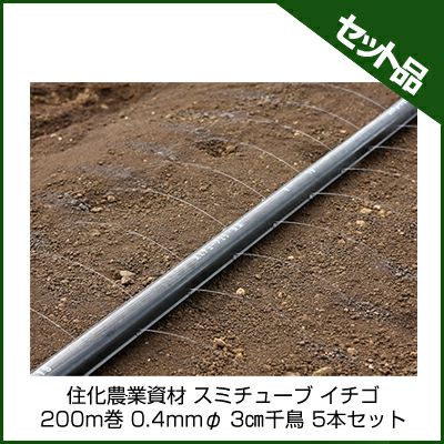 果菜類全般やイチゴ、スイカ、メロンなどに。 住化農業資材 スミチューブ25 イチゴ 200m巻 0.4mmφ 3㎝千鳥 5本セット 潅水チューブ 灌水チューブ