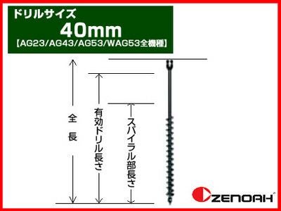 Φ40mm×750mm オーガー用ドリルアタッチメント!! 【ゼノア】オーガー(エンジン式ドリル) 専用ドリル 40mm 【AG23/AG43/AG53/WAG53 全機種】