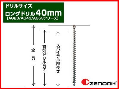 Φ40mm×850mm オーガー用ドリルアタッチメント!! 【ゼノア】オーガー(エンジン式ドリル) 専用ロングドリル 40mm 【AG23/AG43/AG53シリーズ】