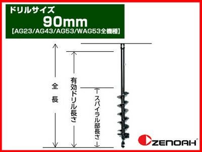 Φ90mm×800mm オーガー用ドリルアタッチメント!! 【ゼノア】オーガー(エンジン式ドリル) 専用ドリル 90mm 【AG23/AG43/AG53/WAG53 全機種】