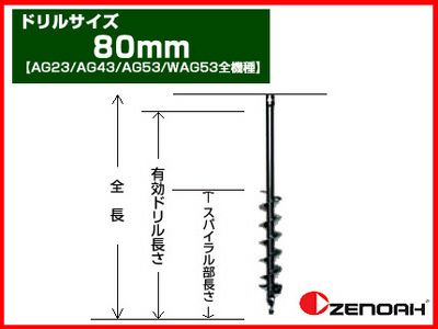 Φ80mm×760mm オーガー用ドリルアタッチメント!! 【ゼノア】オーガー(エンジン式ドリル) 専用ドリル 80mm 【AG23/AG43/AG53/WAG53 全機種】