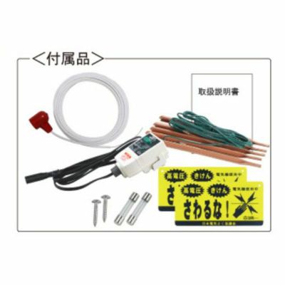 取扱説明書/アース棒(5連)/危険表示板2枚/プラグイン漏電遮断器/ 本器取付ネジ2個/交換用ヒューズ2個/出力コード5m(本体に付属) |