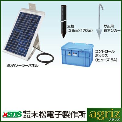 末松電子 20Wソーラーパックセット 電気柵資材 【出力DC12V(20W)】 ソーラーパネル 電柵資材 電気牧柵資材 バッテリータイプに増設するだけでソーラー式にできるソーラーパネルのセットです! ≪詳細≫ 出力:DC12V(20W) 対応機種:ゲッターエース3/ゲッターエース2/ミニゲッター/ゲッターエースSP/ハイパワーゲッター/デンエモン ≪セット内容≫ ・20Wソーラーパネル(取付金具付) ・コントロールボックス(1個) (バッテリー保護回路付) ・支柱(38mm×170cm)(1本) ・ヘリアルアンカ(3本) ※バッテリーは別売りです。 |