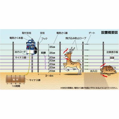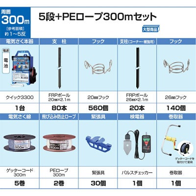 末松電子 電気柵セット クイック3300 5段 + PEロープ 300mセット イノシシ用 シカ用 (5段張り+飛び込み防止ロープ) 出入口ゲート別売