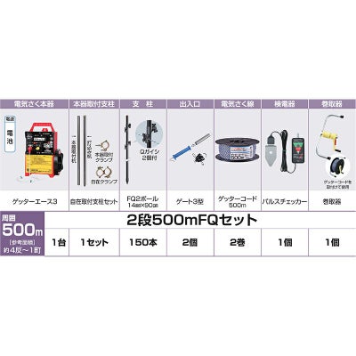 末松電子 電気柵セット ゲッターエース3 2段500m FQセット イノシシ対策 Qガイシ付FRPポール FQ2ポール