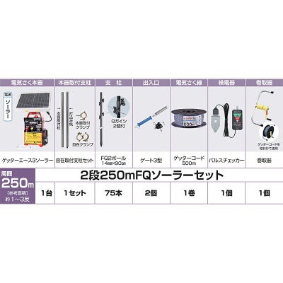 末松電子 電気柵セット ゲッターエース3ソーラー 2段250m FQソーラーセット イノシシ対策 Qガイシ付FRPポール FQ2ポール