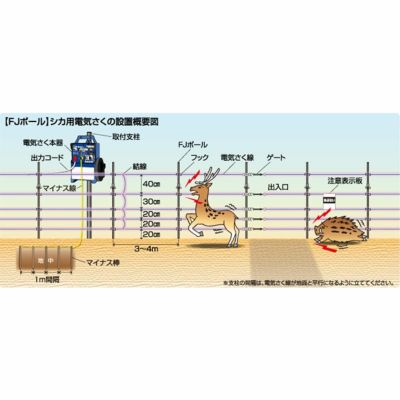 連結式で立て込みしやすく電気さく線の高さ調節が可能な(FJポール+フック)のセット
