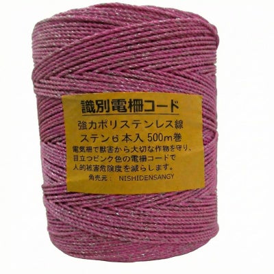ニシデン産業 電気柵 ヨリ線 識別電柵コード 500m ステンレス線6本入 ピンク色