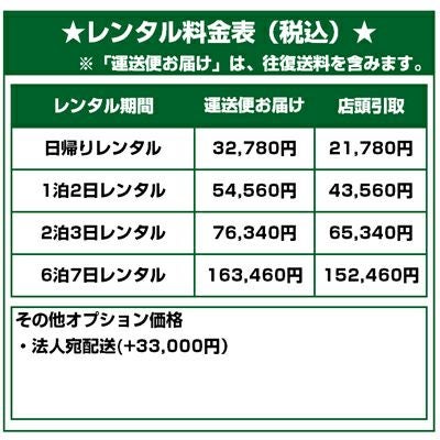 日帰りレンタル料金 ¥ 21,780 税込