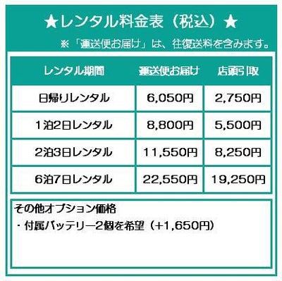 日帰りレンタル料金 ¥ 2,750 税込