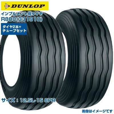 (納期確認後手配) ダンロップ 日本製 インプルメント用タイヤ R800 (12.5L-15 8PR) 331910 チューブタイプタイヤ FARM SUPER 2本+チューブ2本セット 走行抵抗が少ない 牧場 広い接地面積 DUNLOP