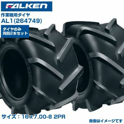 (納期確認後手配) オーツ(ファルケン) 日本製 作業機用タイヤ AL1 (16x7.00-8 2PR) 264749 チューブタイプ 2本セット 優れたけん引力 運搬車 草刈機 FALKEN OHTSU