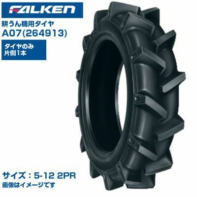 (納期確認後手配) オーツ(ファルケン) 日本製 耕うん機用タイヤ A07 (5-12 2PR) 264913 チューブタイプ 1本のみ 優れたけん引力 耐摩耗性 運搬車 作業機 FALKEN OHTSU