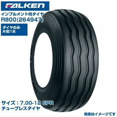 (納期確認後手配) オーツ(ファルケン) 日本製 インプルメント用タイヤ R800 (7.00-12 6PR) 264947 チューブレスタイヤ FARM SUPER 1本のみ 走行抵抗が少ない 牧場 広い接地面積 FALKEN OHTSU