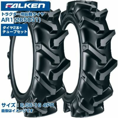 (納期確認後手配) ファルケン(オーツ) 日本製 トラクター用 前輪タイヤ 4WD用 AR1 265031 (6.00-16 4PR) チューブタイプ 両側2本+チューブ2本セット FALKEN OHTSU