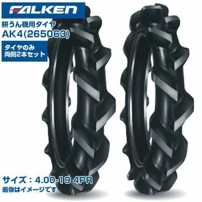 (納期確認後手配) ファルケン(オーツ) 日本製 耕うん機用タイヤ AK4 (4.00-19 4PR) 265063 チューブタイプ 2本セット 水田用タイヤ 標準ラグ FALKEN OHTSU