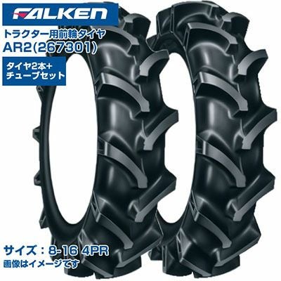 (納期確認後手配) ファルケン トラクター用 前輪タイヤ 4WD用 AR2 267301 (8-16 4PR) 2本+チューブ