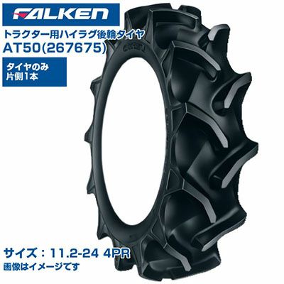(納期確認後手配) ファルケン 日本製 トラクター用 後輪タイヤ 4WD用 AT50 267675 (11.2-24 4PR) チューブタイプ 1本のみ ハイラグパターン バットレス部 ガードリブ採用 水田 畑地 FALKEN