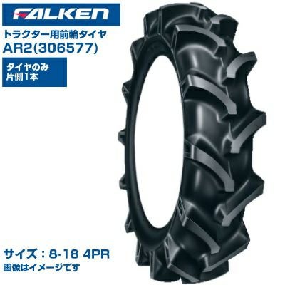(納期確認後手配) ファルケン(オーツ) 日本製 トラクター用 前輪タイヤ 4WD用 AR2 306577 (8-18 4PR) チューブタイプ 1本のみ 弓形ラグパターン 優れた操縦性 排土性 振動低減 FALKEN OHTSU