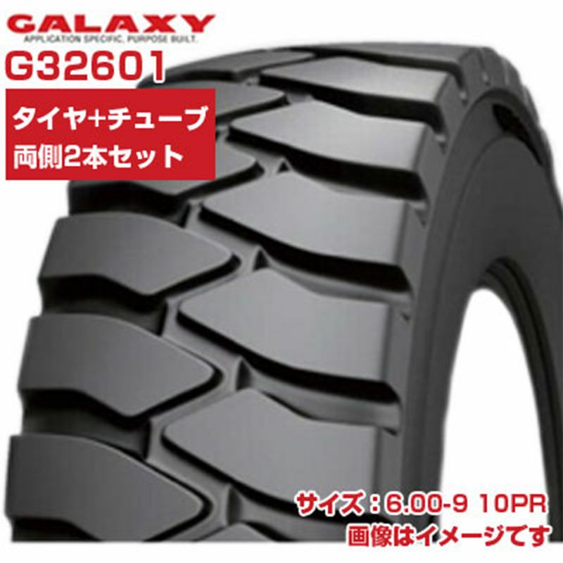 GALAXY フォークリフト用TTタイヤ 2本+チューブ G32601 (6.00-9 10PR) IND-1