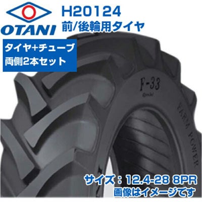 OTANI トラクター 前輪・後輪用タイヤ H20124 2本+チューブセット (12.4-28 8PR) F-33
