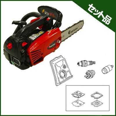 ~セット内容~ ゼノア G2200T-8SPH00×1台 純正プラグ×1個 エアエレメント×1個 フィルタアッセン×1個 フライマリポンプアッセン×1個 ダイヤフラム・ガスケットキット×1個 基本の消耗品に加え、キャブレターオーバーホール用キットと比較的傷みやすいフライマリポンプなどの消耗部品が付いた便利なセットです。 本格的なメンテナンスができますが、一定の修理技術を必要とします。 「世界一軽い。」と言われるだけでは物足りない、ゼノアのこがるminiスゴキレ誕生。 ハイブリッドエンジンケース方式(マグネシウムクランクケース)の採用と、クラッチの軽量化により、チェンブレーキ標準装備ながらクラス最軽量を実現していたG2000シリーズがモデルチェンジ。排気デコンプ無しの高圧縮のエンジンを搭載した、パワー重視のモデルとなります。給排気系を見直し、クラッチドラムを従来の8枚刃から7枚刃に変更することにより出力アップを図ることで回転が落ち難く粘り強さが向上。10インチバーにも十分対応が可能になりました。このサイズでありながら装備も抜かりありません。ハンドルとタンクの一体化しエンジン部と分離することで振動の伝わりを軽減、作業者の負担を軽減します。また、新ダストフリーシステムの採用で、よりきれいな空気だけをキャブレタに供給することでエアクリーナーのメンテナンス頻度が下がります。エアーフィルタの清掃も工具レスで手軽に出来るのでわずらわしい分解作業が必要ありません。チェンブレーキももちろん標準装備です。非常に軽く滑らかな切れ味を持つハスクバーナ純正25AP互換チェーンのH00チェーンと8インチ(20cm)のスプロケットノーズバーの組み合わせとなります。 軽さだけでなくパワーも追求したG2200T。コンパクト設計のため立ち木伐採のような作業は苦手ですが、直径20cm程度までの枝打ちや玉切り作業であれば上位クラスの機種と遜色なくお使いいただけます。 パワー重視のG2200Tであれば10インチバーでのご使用もOK。切断スピードを重視される方には8インチバー仕様をおすすめいたします。手軽に手鋸がわりに使える1台となっております。 |