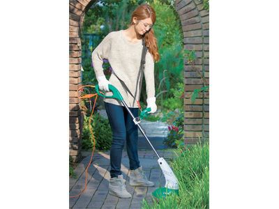 | ナイロンコードなら、庭木・縁石などの多い庭も安心。 ●手軽にサッと草刈り。 ●コード自動送出し&カット。 先端を地面で軽く叩くだけ。 ●キワ刈りも手軽。 ボタンを押すと先端だけ回転。 ●スプール着脱は「ワンタッチ」。 ・2本出しナイロンコードで低振動。 ・スプール先端は金属製。摩耗耐久性アップ。 ●ループ型ハンドル。 使いやすい角度、位置に取付可能。 ●ワンタッチで長さ調整。 最大240mmの範囲でスムーズにスライド。 ●ワンタッチ脱着。 ツナギコード10m付(ロックコネクタ付)。 |