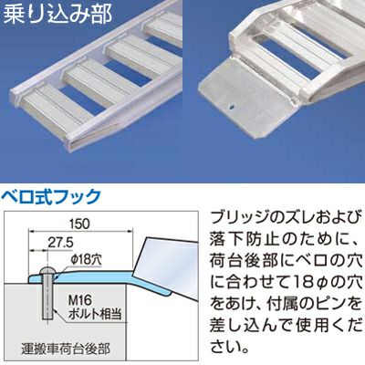 道板 歩み板 ラダー レール アルミラダー ステップ 重機 建機 農機 【法人様専用・代引不可】1.5t アルミブリッジ 2本セット 日軽 油圧ショベル(ユンボ)等 鉄・ゴム兼用 PXF15-270-30 【ベロ式】【全長2850×有効幅300(mm)】【285cm 30cm 1.5t】【最大積載1.5t/セット(2本)】 【1.5トン】【1.5t】【国産・日本製】【2.7m】