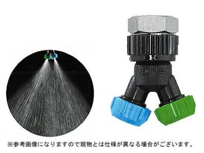 | 既存のブームスプレイヤ(乗用管理機及びトラクタータイプ)に取り付けできます。 ノズルは空気混入タイプで、慣行ノズルに比べドリフト(漂流飛散)しやすい微細粒子を大幅に低減し、付着性を向上させるため2層の扇形噴霧にしています。扇形噴霧の角度は約90度、2層の開き角度は45度で、水田・ネギ等の作物への散布に適しています。又、2層の開き角度90度はキャベツ等の小作物への散布に適しています。 直P1頭口及び直M1頭口には、目詰まり防止用のストレーナーと、噴霧停止時ノズルの先から薬液が落ちないように、ボタ落ち防止用チャッキバルブが内蔵されています。 |