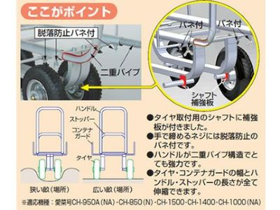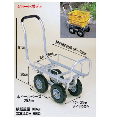 | ●ホイールベースが29.5cmと短いため、方向転換が楽に行えます。 ●ノーパンクタイヤ仕様です。 ●機械重量:7.3kg ●この画像はCH-850の画像です。 ●ノーパンクタイヤ仕様です。 ●商品画像はイメージです。 ●コンテナ等は付いてません。 |