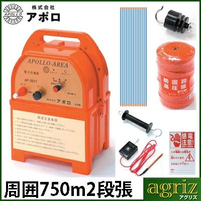 | 大切な農畜産物や土地、レジャー施設をアポロのエリアシステムが24時間守ります。 【特長】 ● 【付属品】単一形アルカリ乾電池にて使用可能(8本)。 ●【別売】外部バッテリーコードで12Vバッテリー使用可能。 ●【別売】ACアダプターで100V電源から使用可能。 ●【別売】専用バッテリーでソーラー使用可能。 ●密閉方式により雨水の防御は万全です。 ●切換スイッチにより、連続・昼間・夜間の三段階の使用が可能です。 ●経済的な電気消費量設計(アルカリ乾電池の場合、1日12時間使用で約50日間使用できます。) 750m2段張りセット内容 ●エリアポール(φ20mm×900mm)(鋼管樹脂被覆) 200本 ●ポールガイシ 400個 ●ヨリ線(500m) 3巻 ●エリアチェッカー 1個 ●ゲートグリップ(バネ付) 2個 ●危険表示板 3枚 |