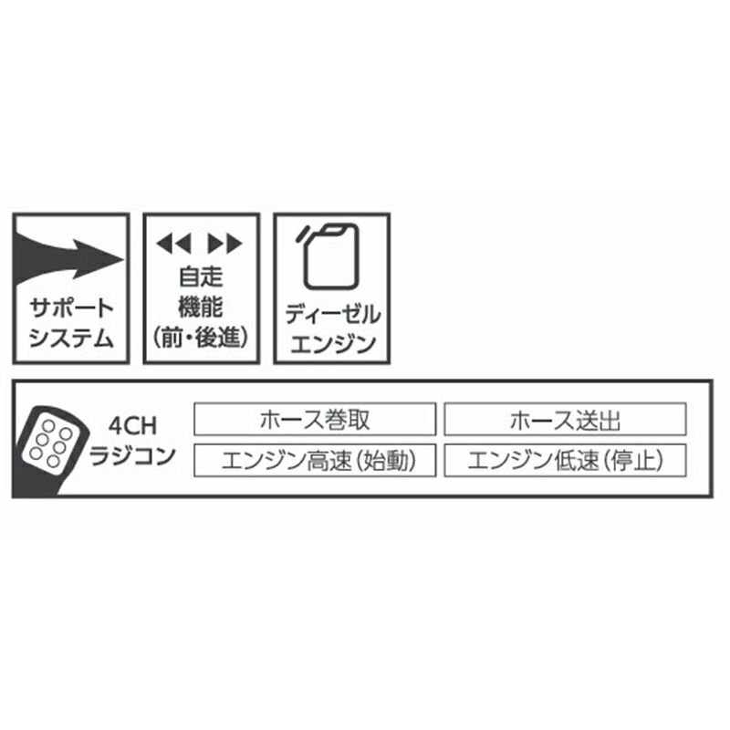 専用設計が支える安心感 丸山のセット動噴シリーズ 使ってみてわかる嬉しいこと。 丸山にして良かったと思ってもらえる ものづくりを製品ひとつひとつに願いを込めて まごころ込めて送り出すセット動噴シリーズ。 これからも農業の未来に応えていきます。 丸山のラジコンセット動噴の特長 1.丸山動力噴霧機のフラグシップ アドバンスフロー動噴を搭載 アドバンスフロー動噴を搭載。作物をやさしく包む最高の霧を生み出します。 2.ラジコン&サポートシステム ラジコンチャンネル 2CH,4CH,6CHと豊富なラインナップから、お客様のご使用方法に合わせたチャンネル数を選ぶことができます。 手袋をはめても押しやすい凸ボタン式のラジコンチャンネルで、本機から離れた場所でも簡単に操作ができます。 引っ張ると送り出すサポートシステム ホースを引っ張ることで、自動で5秒間ホースを送り出します。 作業性の効率アップに貢献しています。 3.ハードな使い方にも耐える高耐久スライダ ローラ式スライダ 整列巻きスライダを回転するローラで受けるため、スライドがスムーズ。 上下からスライダ軸をしっかり挟み込むため、ホースの横引きにも強い構造です。※BRシリーズのみ。 スライダ一体型鉄製ツメブロックと硬質クロムメッキの採用 スライダをナピア螺旋に沿ってスライドさせるツメのケース”ツメブロック”をスライダ一体型の鉄製とし、強度UP。 また、ナピア螺旋、スライド軸、6角軸への硬質クロムメッキ採用で耐摩耗性が向上し、錆の発生も防ぎます。 ※BRシリーズのみ。 4.優れた安全性とメンテナンス性 デッドマンクラッチを採用 「レバーを握ると走行」し、「レバーを離すとブレーキが効く」、自走でのトラック乗せ降ろしが安全に行えます。※MSAシリーズのみ。 ホースガイド部の取外しが簡単 ホースガイド部が簡単に取外しでき、掃除がラクチン。泥などによるスイッチ類のトラブルを未然に防ぎます。※BRシリーズのみ。 楽々メンテナンスカバー 工具不要でカバーが簡単に着脱可能! ナピア螺旋や整列巻部へのグリスアップが簡単に行えます。 かくはん機も簡単に取付られ、かくはん軸も不要です。※BRシリーズのみ。 5.定評のあるガソリンエンジンタイプと低燃費のディーゼルエンジンタイプをラインナップ ガソリンエンジンタイプだけでなく、ディーゼルエンジンタイプもラインナップ。 4chラジコン動噴(クボタエンジン) MSA659DR4S-K(11.5) ディーゼルエンジン搭載自走ラジコン動噴