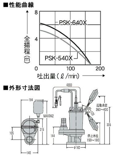 土木工事から汚水排水まで手軽に使え、耐久力抜群 【プレミア保証付き】工進水中ポンプ PSK-540X/50Hz