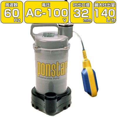 用途 | ●土木・設計工事の排水に。 ●ビル・工場・倉庫地下などの湧水たまり水の排水に。 ●ご家庭での給・排水に。 ●農家・園芸・各種養殖地(淡水)などの給・排水に。 (注意) 石などの硬い固形物を含む水に使用した場合、インペラの磨耗が早くなります。 |