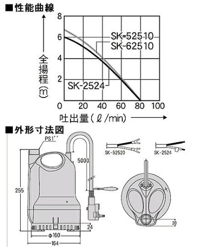 | 付属品 | ホースバンド20mm:1個 ホースバンド25mm:1個 カップリング25mm:1個 カップリングパッキン25mm:1個 タケノコニップル25×25mm:1個 タケノコニップル25×20mm:1個 ロープ:5m |