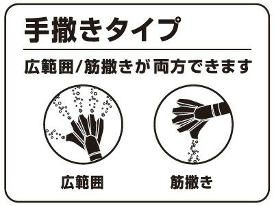 手撒き感覚で広範囲の散布や筋撒きが行えます。