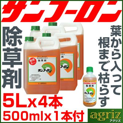 サンフーロン500ml 1本付きでこの価格!圧倒的な安さが魅力のグリホサート系除草剤の王様のジェネリック品! 除草剤 サンフーロン 5L 4本 (計20L) + 500mL 1本おまけ付 除草剤 ジェネリック グリホサート スギナ 笹 竹 枯れる 成分 農薬 液剤 希釈 噴霧 農園 果樹 野菜 水稲 雑草 道路 造園 土木 作業所 事業所 工場 マンション 病院 パチンコ 太陽光発電 施設管理 駐車場 ホテル