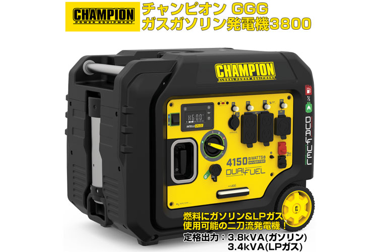 そんな発電機をお探しの皆様、この「Champion GGGガスガソリン発電機3800」を是非ともご検討ください!