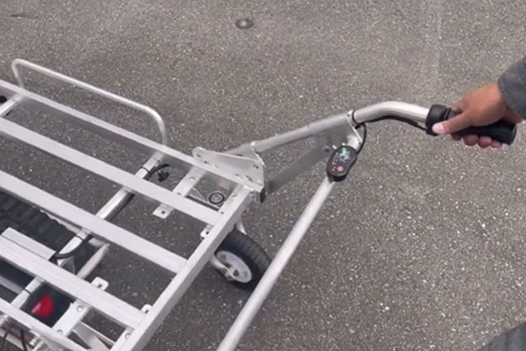 旋回には少し慣れが必要ですが、後輪が自在に動く「キャスター仕様」なので、100kgの荷物を積んでいてもスムーズに方向転換できます。また、本体重量はわずか24kgと超軽量。軽トラへの積み降ろしも一人でヒョイとこなせる「手軽さ」が、作業全体の効率をグンと高めてくれます。