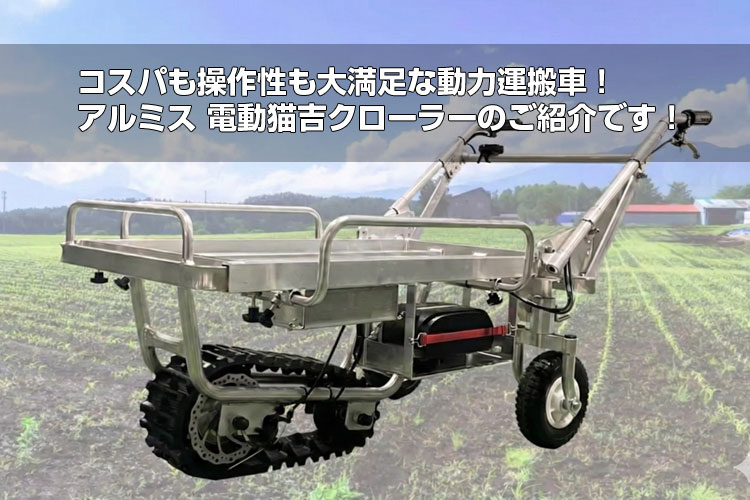 今回ご紹介するのは、コスパが良くて扱いやすい!アルミス電動運搬車「電動猫吉クローラー」です。エンジン式と比べてどうなの?どれくらい積めるの?本当に使いやすい?そう思いますよね。そんな皆様の疑問にお答えしていきます。